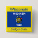 An authentic high quality image of the flag of Wisconsin set between the state name and nickname over a flag-colour background.