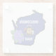 Wisconsin Flag & Flower Blue Violet Custom Name Glass Coaster