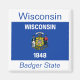 An authentic fine quality image of the flag of Wisconsin set between the state name and nickname over a flag-colour background.