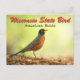 This cool postcard features a stunning photo of an American Robin with the text, "Wisconsin State Bird, American Robin." Photo created by award-winning photographer Maria Jeffs.
