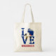 Wisconsin love - Wisconsin in red uppercase font the with the word loved filled with the state flag. The letter O in love is the silhouette with the outline of the state of Wisconsin.