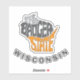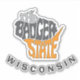 Fun and colourful typographic design with a retro feel features the state of Wisconsin's nickname: The Badger State displayed within a state shaped silhouette