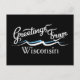Wisconsin water themed travel design featuring nautical inspired ocean lake river waves that says Greetings From Wisconsin