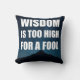 Bold white typography of the quote “Wisdom Is Too High for a Fool” set over a starry night sky and mountain silhouette. Modern, minimalist throw pillow for living rooms, studies, dorms, and reading nooks. Inspirational home decor, proverb-inspired design, navy/black palette, high-contrast text, great gift for graduates, teachers, and thinkers.