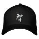 The Chinese character for wisdom on the front in White thread and the English word "Wisdom" on the back in white thread.