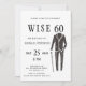 Black tie stylish elegant and funny black and white wise 60 milestone man birthday party invitation with a black suit silhouette with walking stick. ++++++++++ A classy geometric pattern on the reverse. ++++++++++ Easy to personalise with your details!