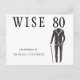 Black tie formal stylish elegant (and maybe funny!) black and white wise 80 milestone man birthday party invitation postcard with a black suit silhouette carrying a walking stick. ++++++++++ Easy to personalise with your details on both sides!