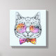 This design features a cute, cool cat wearing rainbow glasses and a polka dotted bow tie.