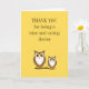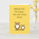 This doctor thank you card features a wise owl theme. Feel free to edit the text to refer to the doctor's specialisation! The cute owls make an appearance on the inside of the card, as well as the front.