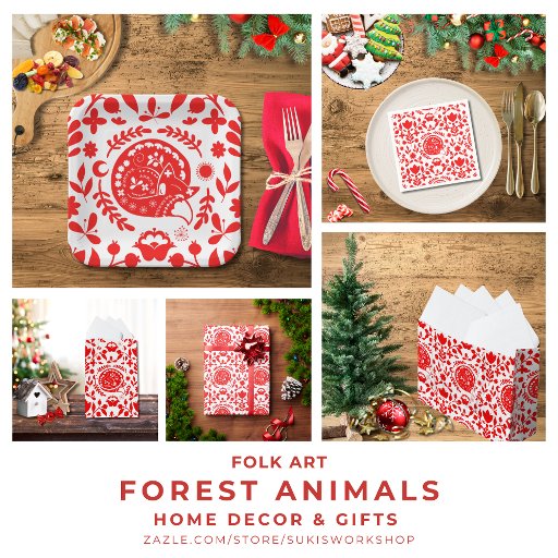 Folk Art Forest Animals - Holiday Decor & GiftsDesigned by Suki's World