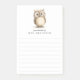 Sticky notes featuring a cute, wise owl wearing glasses and customisable text “from the desk of” and your name below. Below are light grey lines for writing.