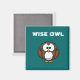 Wise Owl Fridge Magnet with blu/green background with a picture of a cartoon owl with the words wise owl in white