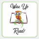 Wise Up and Read Book Owl Funny Kids Cartoon Square Sticker