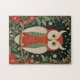 A meticulously detailed owl, adorned in red, green and cream, stands sentinel amidst a flurry of seasonal foliage. Did you know that owls are symbols of wisdom and protection in many cultures? Their silent flight and nocturnal habits add to their mystique, making them fascinating creatures of the night. This design captures the owl's quiet grace and the magic of Christmas in a celebration of nature and tradition.