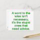 A word to the wise isn't necessary, it's the stupid ones that need advice.