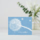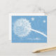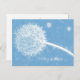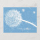 Pretty blue and white design gives a peaceful aspect to the dandelion. Blow and make a wish! Or just send this postcard.