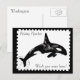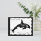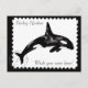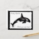 This unique postcard features a watercolor of an orca whale, with a digitally created postage stamp border. The background colour, and text, can be customised if desired.