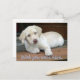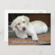 Now you know why they call it "puppy love." What an adorable yellow lab puppy, staring up with those loving blue eyes with the message "Wish you were here.