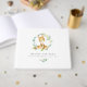 A very chic gender neutral baby shower guest book, featuring our adorable bush baby kangaroo. Invite guests at your baby shower to share their words of wisdom for mum to be and baby in this baby shower guest book. Designed to match our bush babies baby shower invitation collection. The cover features our cheeky bush baby kangaroo sitting in a wreath of soft eucalyptus leaves and wattle flowers. Personalise the cover and spine with the guest of honour's name and baby shower date. All text can be changed to your own custom text.