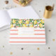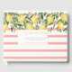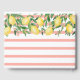 Fun and whimsical guestbook design for a lemons themed baby shower, featuring watercolor citrus against a background of soft pink and white stripes.