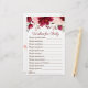 Wishes for Baby Shower Game Burgundy Pink Floral