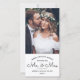 Send joyful holiday wishes as the new Mr. & Mrs! Celebrate your first Christmas married and share two favourite wedding pictures with a stylish vertical photo holiday card. All wording on this template is simple to personalise. Delete text on back if you prefer to hand write a note for a wedding thank you and Christmas card combined. The modern minimalist black and white design features trendy handwritten style script typography and 2 photos of the newlyweds. Family and friends will love displaying this elegant customised card. Cheerful wishes for a merrily ever after!