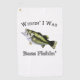 Successful bass anglers get slimy and wet. Make sure your favourite fisherman is prepared with this fun fishing towel Sharp detailed image of a leaping largemouth with the text Wishin' I Was Bass Fishin'