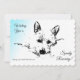 On this card is a digital ink sketching of a West Highland White Terrier Dog. The Westie is laying down resting his head on a pillow hoping he can get a little attention. . The saying reads "Wishing you a Speedy Recovery" "Along with a little Westie Love". Background has a variegated light teal blue on white. Back of card is the light teal blue. You have room on the back of card to write your messages. Feel free to change the words. Whenever you are with a Westie, you are in a Westie's World, the land of joy. You can’t go wrong giving a Westie Lover a card with their favourite pet.