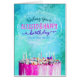Wish someone a happy birthday with this unique calligraphy and hand-lettering style card, featuring the message, "Wishing you a Blessed & Happy birthday, full of peace and joy!" Includes hand-drawn style white frame on digitally textured blue and turquoise background with birthday cake and candles.