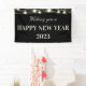This Wishing you a Happy New Year banner features string lights and jars on a black background. Personalise it with the year.