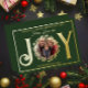 Simple real foil, elegant and understated family photo "Wishing You A Holiday Season Filled With Peace, Love and Joy" wreath design with centre circular photo Christmas holiday design. Back is blank.