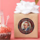 A formal yet playful red plaid Donald Trump sticker for your Christmas mail, cards, gifts and treats this MAGA Christmas.