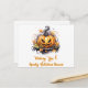 Step into the enchanting world of Halloween with our spooky Halloween postcard! Embrace the spirit of the season with its eerie design featuring a super creepy jack-o' lantern surrounded by green and orange Autumn leaves. Against a crisp white background, this postcard captures the essence of Halloween fun.