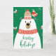 A cute card with a polar bear on the front wearing a knitted cap. Inside the greeting says "Wishing you a very Beary Christmas!"