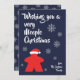 Send your holiday wishes with this board game themed holiday card featuring a Santa Claus meeple game piece and white snowflakes underneath the greeting "Wishing you a very Meeple Christmas" in a pretty white font on a blue grey background. The back of the card features a pattern of white snowflakes on a blue grey background.