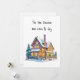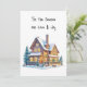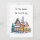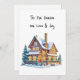 Pretty personalised Christmas card with a pretty watercolor log cabin and pine trees.