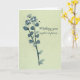 “Wishing you comfort & peace” in soothing colours of sympathy for your loss, with a stem of blue flowers, a butterfly, and a bee on a light textured background.