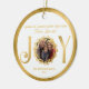 Simple faux foil, elegant and understated family photo "Wishing You A Holiday Season Filled With Peace, Love and Joy" wreath design with centre circular photo Christmas holiday design. Outer ring, letters "J" and "Y" in "Joy", and the leaves encircling the photo are faux foil. Top and bottom text is gold-toned (but not faux foil). Back is blank solid colour with faux foil accent ring. These make great package adornments during the holiday season and gifts to grandparents, other family and friends.