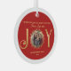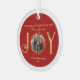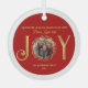 Simple faux foil, elegant and understated family photo "Wishing You A Holiday Season Filled With Peace, Love and Joy" wreath design with centre circular photo Christmas holiday design. Letters "J" and "Y" in "Joy", and the leaves encircling the photo are faux foil. Top and bottom text is gold-toned (but not faux foil). These make great package adornments during the holiday season and gifts to grandparents, other family and friends, not to mention gorgeous tree decor.