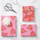Wispy Leaves Contemporary Pattern Pink Orange-Red Wrapping Paper Sheet