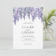 This elegant and romantic wedding invitation features a white background with wisteria in watercolor. The reverse side features a light purple background with wisteria patterns. Personalise it for your needs. You can find matching products at my store.