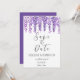 Wisteria, lavender, purple floral, elegant Wedding save the date. Watercolor flowers. Unique, hand painted artwork by artist Monika Howarth. You can personalise it with your details.