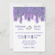 A spring breeze blows softly and the violet petals dangle from above. Your wedding celebration is special. Send your guests these enchanting springtime, wisteria invitations with multi-layered vines that drop over the top onto a white background. Platinum and diamond wedding rings are centre. And customise all the pertinent details to make this your special invitation.