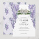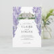 This elegant and romantic wedding invitation features a white background with a mansion surrounded by wisteria in watercolor. The reverse side features a light purple background with wisteria patterns. Personalise it for your needs. You can find matching products at my store.