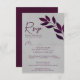 Wistful Leaves Cassis Purple & Grey Wedding RSVP Card