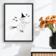 Witch And Bats Simple Line Art Minimal Halloween Poster