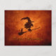 Witch and Cat Silhouette Flying on Broomstick Postcard