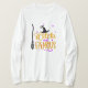 This fun Halloween shirt features a witches hat and broom and it says Witch and Famous in orange and purple.