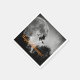 Fun Halloween paper party napkins feature black and white photograph of full moon with flying witch silhouette and customisable text overlay