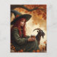 Witch and Pet Goat in Autumn Postcard